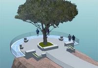 Os percursos de ciclovia e pedonais terão um desenho simples, claro e agradável, bem como materiais condizentes, delimitando clareiras com relva, uma zona de rochas e plantas seleccionadas.